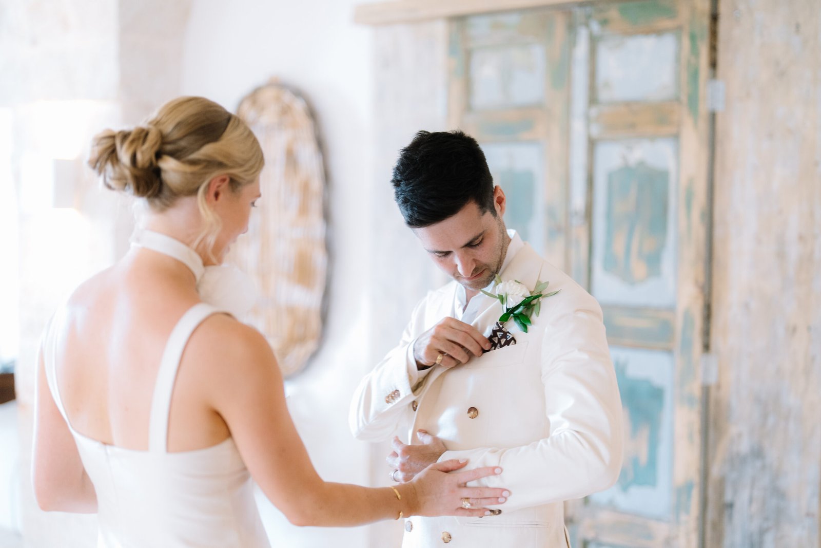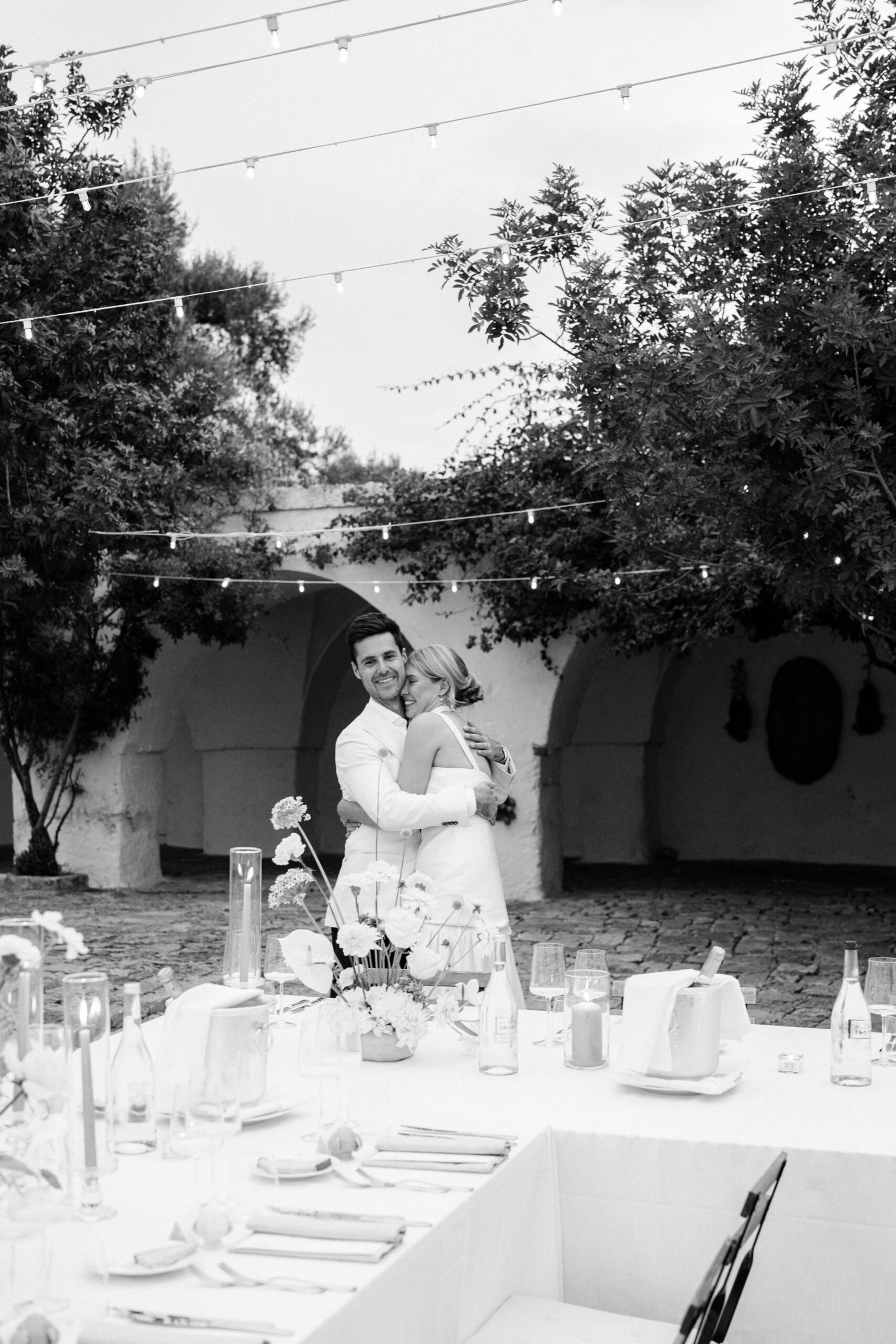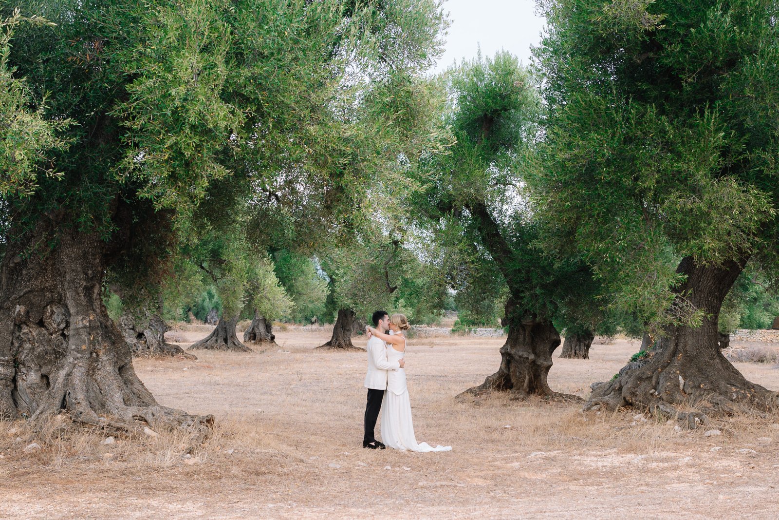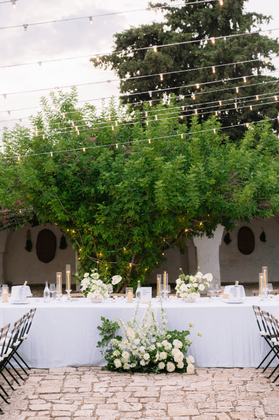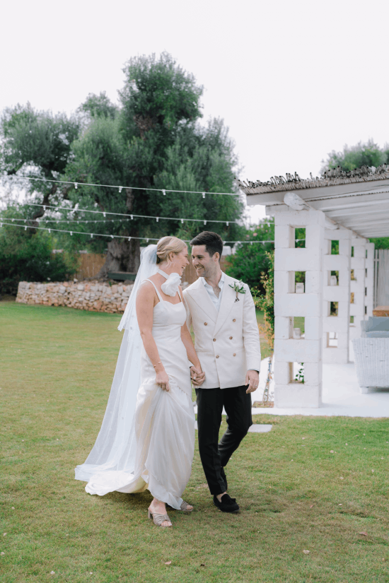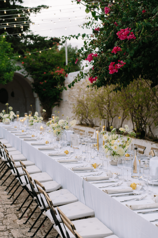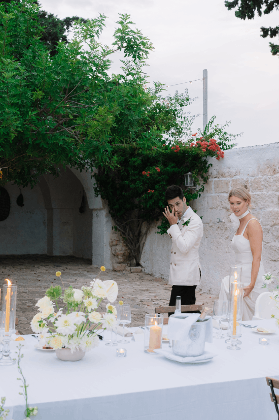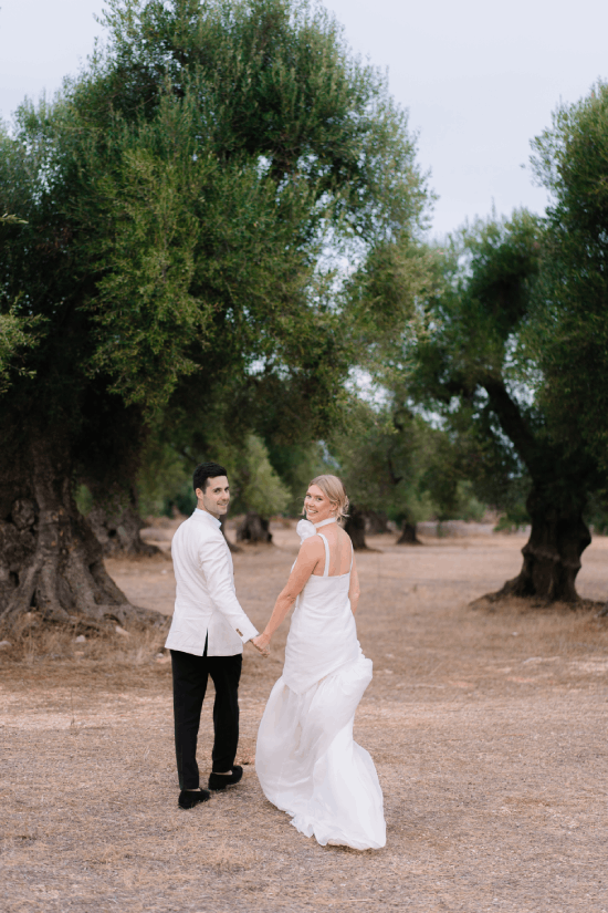 An understated luxury wedding meets Modern Elegance in Puglia, Italy. White washed walls set amongst an olive grove long tables layered in linens, flickering candles and authentic Apulian ceramics. An intimate wedding Ceremony amidst the lush greens and dancing the night away under the stars. This couple came all the way from London to have their Italian Dream wedding.